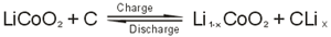 The chemical reactions for charge and discharge are as shown below: